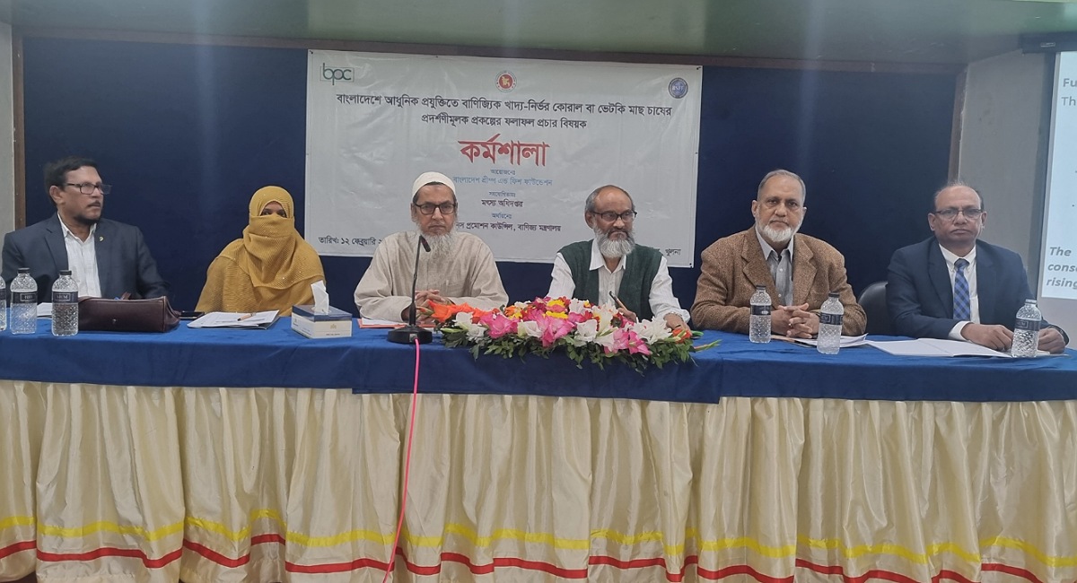 বুধবার ১২ফেব্রুয়ারী সকাল ১০টায় খুলনায় সিএসএস আভা সেন্টার এ বাণিজ্য মন্ত্রণালয়াধীন বিজিনেস প্রমোশন কাউন্সিল (বিপিসি) এর আর্থিক সহযোগীতায় এবং মৎস্য অধিদপ্তরের সার্বিক সহযোগীতায় বাংলাদেশ শ্রিম্প এন্ড ফিশ ফাউন্ডেশন (বিএসএফএফ) ‘বাংলাদেশ আধুনিক প্রযুক্তিতে বাণিজ্যিক খাদ্য-নির্ভর কোরাল/ভেটকি মাছ চাষের প্রদর্শণীমূলক প্রকল্পের ফলাফল প্রচার বিষয়ক’ কর্মশালার আয়োজন করে।