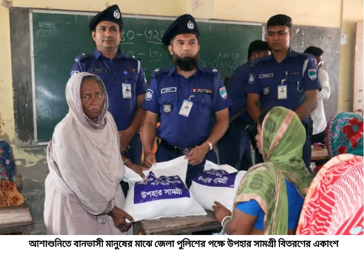 আশাশুনিতে বানভাসী মানুষের মাঝে জেলা পুলিশ উপহার সামগ্রী বিতরণ করেছে।