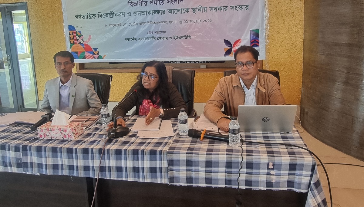 জেলা পরিষদের কাজ কী, জেলার মানুষের কোন উপকারে তারা পাশে থাকেন- এ সম্পর্কে কারোরই কোনো স্বচ্ছ ধারণা নেই। আইনগত বাধ্যবাধকতা না থাকলেও পৌরসভা এলাকার উন্নয়ন কর্মকাণ্ডেও সংশ্লিষ্ট সংসদ সদস্যের পরামর্শ উপেক্ষা করা যায় না। সিটি কর্পোরেশনের ক্ষেত্রে দীর্ঘমেয়াদে আমাদের নগর সরকার গঠনের দিকে অগ্রসর হতে হবে। ২৯ জানুয়ারি ২০২৫, সকাল ১০টায় খুলনার হোটেল রয়েল ইন্টারন্যাশনালের ব্যাঙ্কোয়েট হলে এসডিসির সহযোগিতায় গভার্নেন্স এডভোকেসি ফোরাম ও ইউএনডিপির আয়োজনে গণতান্ত্রিক বিকেন্দ্রীকরণ ও জনআকাঙ্ক্ষার আলোকে স্থানীয় সরকার সংস্কার শীর্ষক বিভাগীয় সংলাপে বক্তারা এসব বলেন।