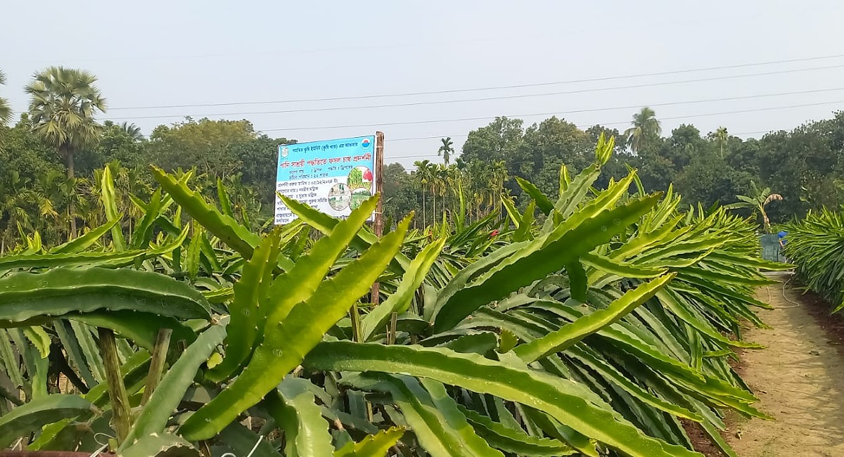 ড্রাগন ফল চাষী নবদ্বীপ মল্লিক বলেন সুনিষ্কাশিত উঁচু ও মাঝারি উঁচু উর্বর জমি নির্বাচন করতে হবে এবং ২-৩ টি চাষ দিয়ে ভালোভাবে মই দিতে হবে। চারা রোপণের জন্য বেড তৈরি করতে হবে। বেডের মাটিতে পচা গোবর , টিএসপি, এমওপি, জিপসাম এবং জিংক সালফেট সার ভালো করে মিশাতে হবে। বেড তৈরির পর চারা রোপণ করে বেডে ড্রিপ সেচ এর প্রয়োজনীয় উপকরণ, যেমন : পানির ট্যাংক, পানির মোটর, পাইপ, ভালভ, ড্রিপার ইত্যাদি ভালোভাবে ও স্থায়ীভাবে সেটআপ করতে হবে। জমিতে প্রয়োজনীয় আন্ত:পরিচর্যায় ঠিক মত করলে এবং সার ও সেচ ঠিকমত প্রয়োগ করলে গাছ দ্রুত বৃদ্ধি পায়। যেহেতু ড্রাগন গাছ লতানো এবং ১.৫ থেকে ২.৫ মিটার লম্বা হওয়ায় সাপোর্টের জন্য গাছের মাঝে সিমেন্টের ৪ মিটার লম্বা খুঁটি পুততে হবে। প্রতিটি খুঁটির মাথায় একটি করে মটর সাইকেলের পুরাতন টায়ার মোটা তারের সাহায্যে আটকিয়ে দিতে হবে। তারপর গাছের মাথা ও অন্যন্য ডগা টায়ারের ভিতর ঢুকিয়ে দিয়ে বাইরের দিকে ঝুলিয়ে দিতে হবে। কেননা এভাবে ঝুলন্ত ডগায় ফল বেশি ধরে।