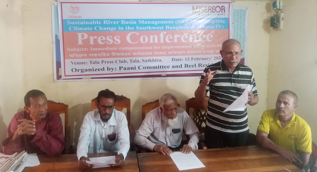 সাতক্ষীরার তালা উপজেলার কপোতাক্ষ নদ অববাহিকার পাখিমারা বিলে সরকার কর্তৃক বাস্তবায়িত জোয়ারাধার (টিআরএম) কার্যক্রমের বকেয়া ক্ষতিপূরণের দাবীতে সাংবাদিক সম্মেলন অনুষ্ঠিত হয়।
