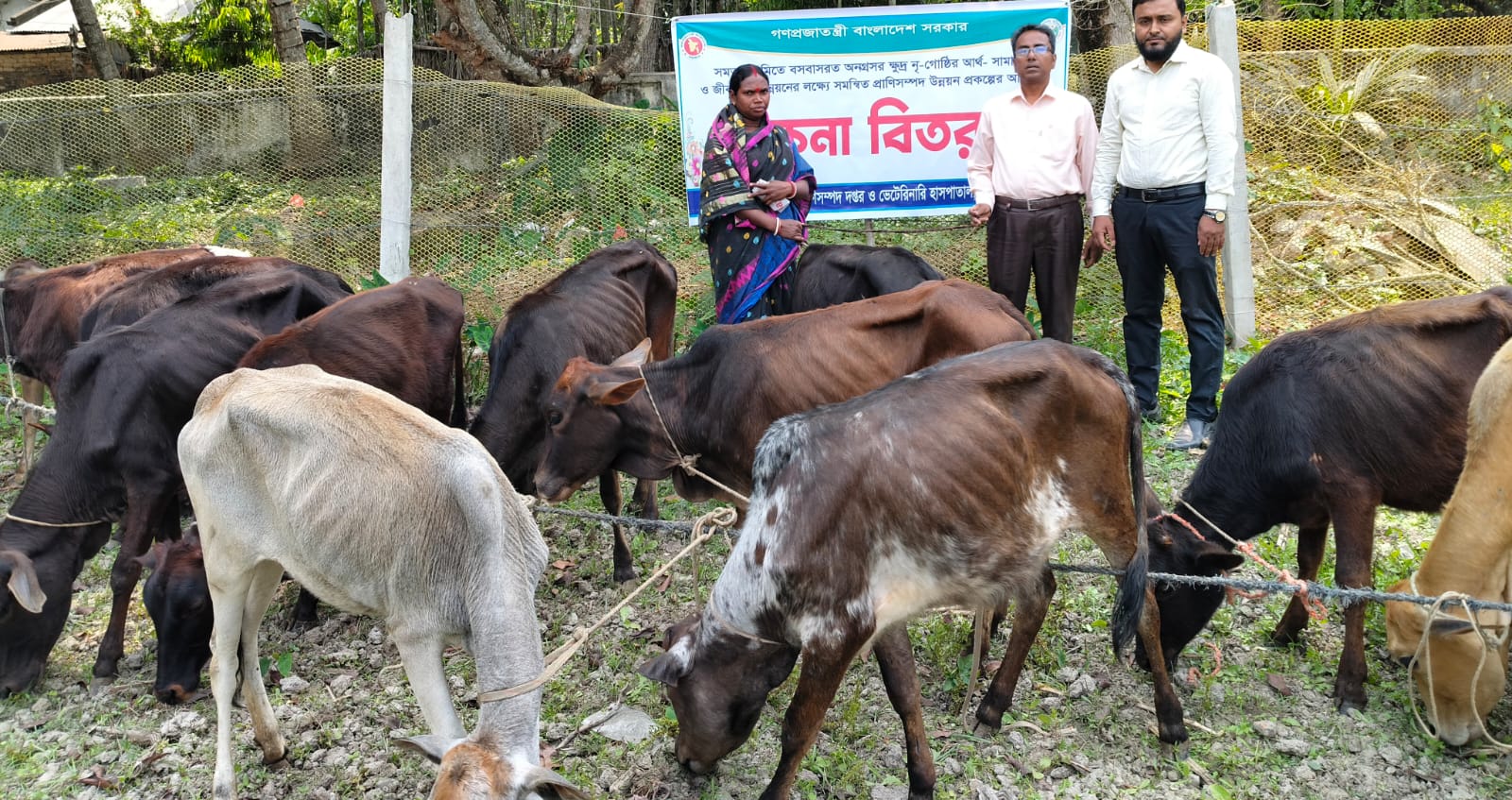 তালা উপজেলা প্রাণিসম্পদ দপ্তর ও ভেটেরিনারি হাসপাতালের আয়োজনে সমতল ভূমিতে বসবাসরত অনগ্রসর ক্ষুদ্র নৃ-গোষ্ঠীর আর্থ সামাজিক ও জীবন মানোন্নয়নের লক্ষ্যে সমন্বিত প্রাণিসম্পদ প্রকল্পের আওতায় ২৪ জন সুফলভোগী মুন্ডা সম্প্রদায়ের মাঝে একটি করে বকনা গরু বিতরণ করা হয়।