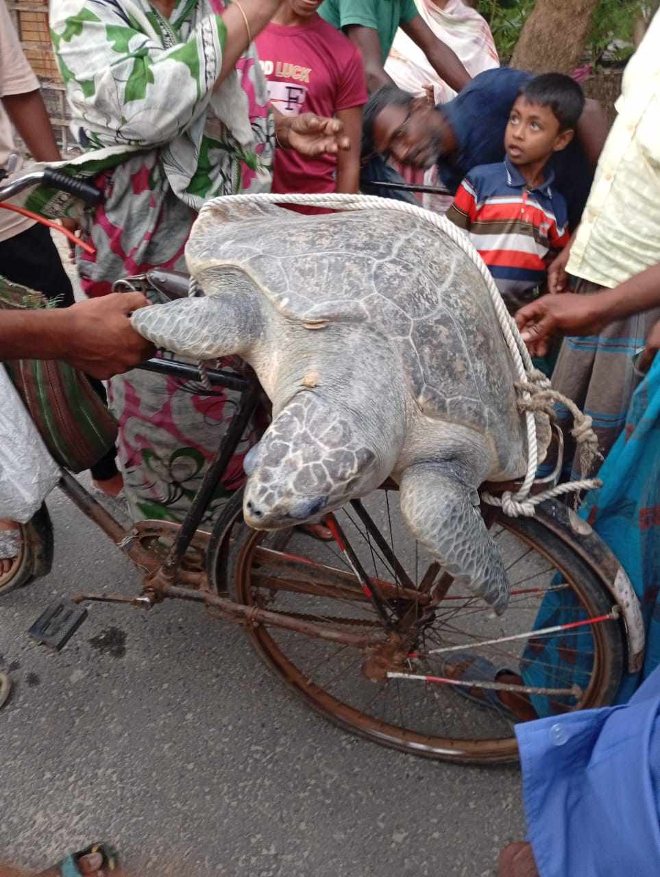 স্থানীয়রা এই কচ্ছপটি দেখে কাটা কচ্ছপ ও ওজন আনুমানিক ৩০ কেজির মতো হবে বলে অভিহিত করেছেন। শুক্রবার বিকালে বাবু কচ্ছপটিকে বিক্রয়ের জন্য বাজারে নিয়ে গেছে বলে জানা গেছে। তবে কচ্ছপটি মারা যাওয়ার কারনে শেষ খবর পাওয়া পর্যন্ত সেটি বিক্রয় করা সম্ভব হয়নি। যার কারনে বাবু কচ্ছপটিকে বাড়িতে নিয়ে গেছে বলে জানা গেছে।