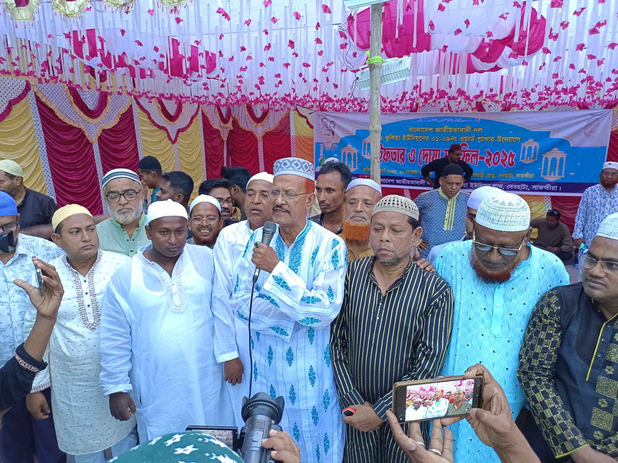 দেবহাটা উপজেলা স্বেচ্ছাসেবক দলের সিনিয়র যুগ্ম আহবায়ক আহম্মদ আলীর সঞ্চালনায় ইফতার মাহফিলে প্রধান অতিথি ছিলেন দেবহাটা উপজেলা বিএনপির সাবেক আহবায়ক সিরাজুল ইসলাম। বিশেষ অতিথি হিসেবে উপস্থিত ছিলেন যথাক্রমে দেবহাটা উপজেলা বিএনপির সাবেক সাধারন সম্পাদক ও পারুলিয়া ইউপি চেয়ারম্যান গোলাম ফারুক বাবু, নওয়াপাড়া ইউনিয়নের সাবেক চেয়ারম্যান রেজাউল করিম, কুলিয়া ইউনিয়ন বিএনপির নেতা হামিদুল হক শামীম, পারুলিয়া ইউনিয়ন বিএনপির সাবেক সাধারন সম্পাদক রফিকুল ইসলাম সানা, উপজেলা যুবদলের সাবেক সাধারন সম্পাদক আব্দুর রাজ্জাক, উপজেলা জিয়া পরিষদের সভাপতি সহকারী অধ্যাপক ইয়াছিন আলী, জেলা স্বেচ্ছাসেবক দলের যুগ্ম আহবায়ক মঞ্জুর মোর্শেদ মিলন, উপজেলা স্বেচ্ছাসেবক দলের আহবায়ক জাহাঙ্গীর কবির পল্টু, দেবহাটা রিপোর্টার্স ক্লাবের সভাপতি আর.কে বাপ্পা, সাংগঠনিক সম্পাদক কে এম রেজাউল করিম, উপজেলা মৎস্যজীবি দলের সদস্য সচিব শাফায়েত হোসেন বাচ্চু, উপজেলা যুবদলের সাবেক যুগ্ম সাধারন সম্পাদক নজরুল ইসলাম, উপজেলা জিয়া পরিষদের সহ-সভাপতি আবু তৈয়ব খান ও সহ-সভাপতি ইদ্রিস আলী, সাংবাদিক সিরাজুল ইসলাম, দেবহাটা উপজেলা ছাত্রদলের আহবায়ক ইমরান ফরহাদসহ বিএনপির বিভিন্ন অঙ্গ সহযোগী সংগঠনের নেতৃবৃন্দ ও শতশত সাধারন মানুষ।