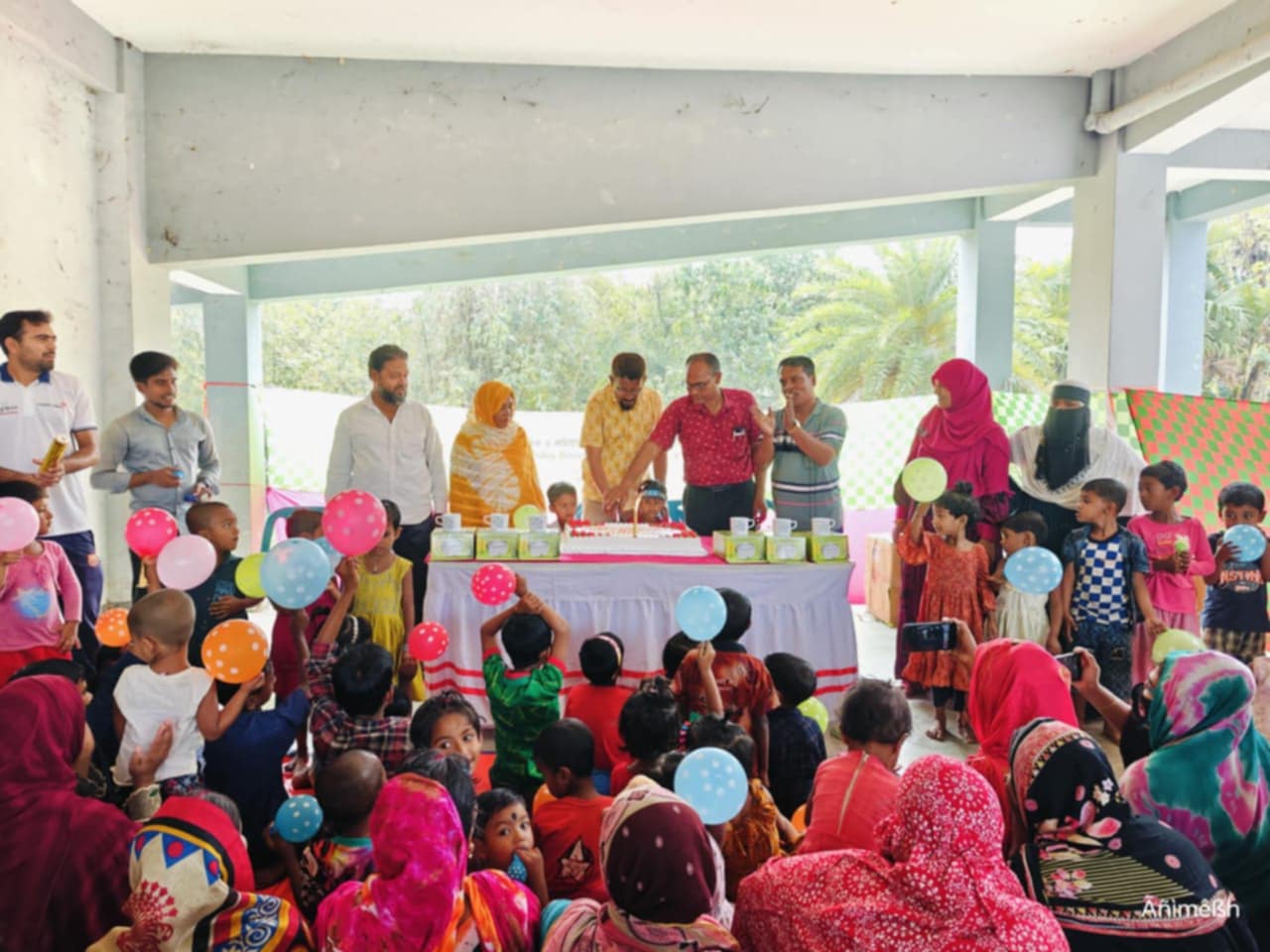 এসময় শিশুদের সাথে নিয়ে আনন্দ উৎসবের মধ্য দিয়ে কেক কাটা হয় এবং প্রত্যেক শিশুদের জন্য উপহার হিসাবে ১টি টিফিন বাটি ও ১টি মগ প্রদান করা হয়।
