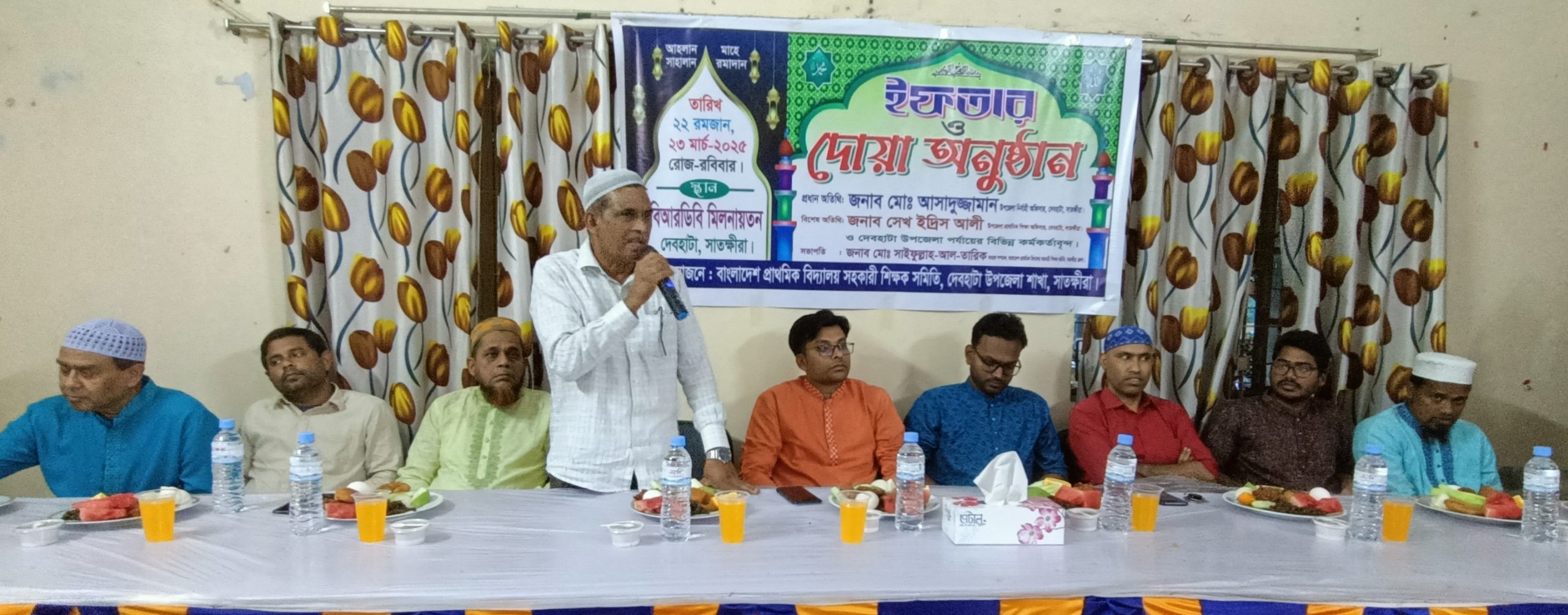 ইফতার মাহফিলের পূর্বে দেশ ও জাতির কল্যান কামনায় দোয়া করা হয়।