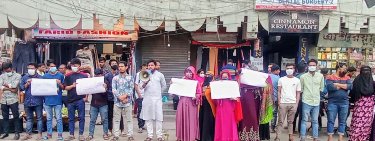 নানা অ নি য় ম ও নি র্যা তন বন্ধে শহরে ইউরোটেক্স শ্রমিকদের মানববন্ধন