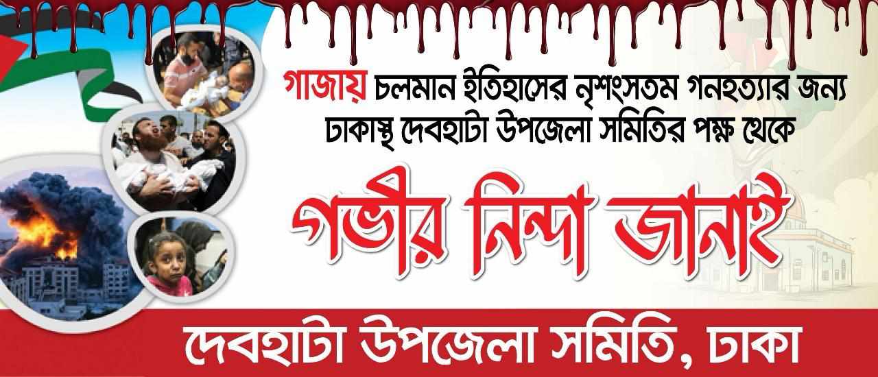 ফিলিস্তিনে গণহত্যার প্রতিবাদে ঢাকাস্থ দেবহাটা উপজেলা সমিতির নেতৃবৃন্দ বিবৃতি প্রদান করেছেন। বিবৃতিতে ঢাকাস্থ দেবহাটা উপজেলা সমিতির আহবায়ক খাইরুল ইসলাম ও সদস্য সচিব তাহাজ্জাত হোসেন হিরু বলেন, আমরা গভীর উদ্বেগ ও তীব্র নিন্দার সঙ্গে ফিলিস্তিনে চলমান বর্বর গণহত্যার প্রতিবাদ জানাচ্ছি।