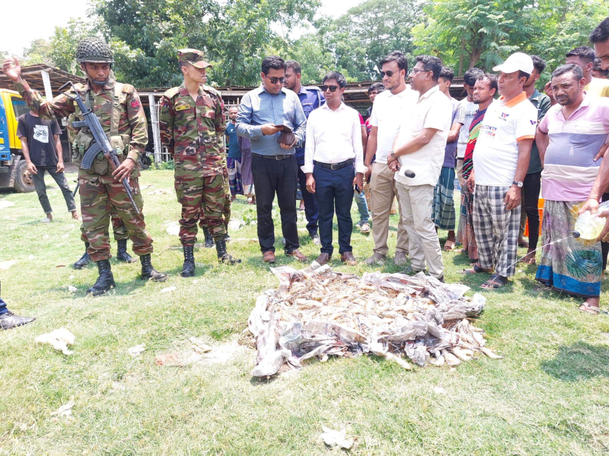 এসময় জব্দকৃত চিংড়ি মাছগুলো প্রকাশ্যে আগুনে পুড়িয়ে বিনষ্ট করা হয়।