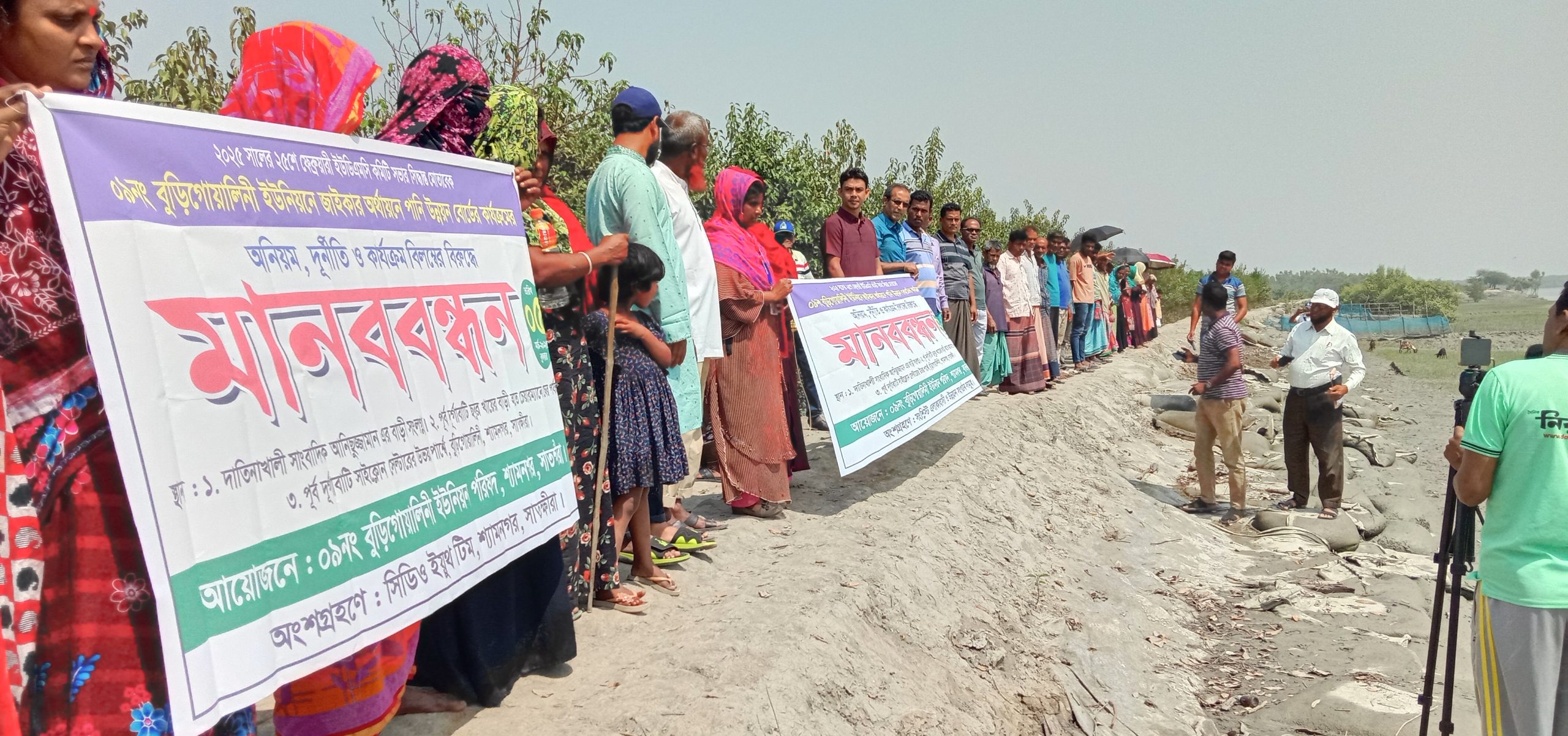 নেই কোন সিডিিউল ও সাইনবোর্ড। আমরা এই কার্যক্রম সম্পর্কে জানতে চাইলে বিশেষ করে প্রকল্পের সিডিউল বা পরিকল্পনা ও বাজেট সম্পর্কে জানতে চাইলে তারা এ বিষয়ে কোন তথ্য বা মতামত প্রকাশ করতে চায় না। এবং পানি উন্নয়ন বোডের কর্মকর্তা ও কর্মচারীরা নিজেদের ইচ্ছেমত স্বেচ্চাচারিতামুলক ভাবে কাজ করে যাচ্ছে। ইউনিয়ন পরিষদ, সাংবাদিক সহ স্থানীয় সুশীল সমাজের প্রতিনিধিদের সাথে উক্ত কাজের কোন সমন্বয় বা যোগোযোগ নেই। তাদের অনিয়ম ও দূর্নীতির বিরুদ্ধে নানা ধরনের প্রতিবাদ আলোচনা শুরু হলে বিগত ২৫ ফেব্রুয়ারী ২০২৫ তারিখে অনুষ্ঠিত ৯ নং বুড়িগোয়ালিনী ইউনিয়ন দুর্যোগ ব্যবস্থাপনা কমিটির আলোচনার সিদ্ধান্ত মোতাবেক পানি উন্নয়ন বোর্ডের কার্যক্রমে বিরুদ্ধে মানববন্ধর করার পরিকল্পনা গৃহিত হয়।