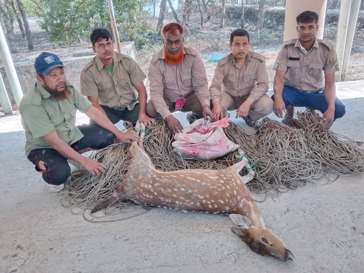 সুন্দরবন থেকে লাইলনের ফাঁদ, মাংস ও মৃ ত হরিণ উদ্ধার