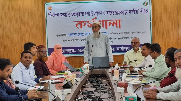 সোমবার ২৪ফেরুয়ারি সকাল ১০টায় খুলনা বিভাগীয় উপ-পরিচালক সম্মেলন কক্ষে এক দিনের কর্মশালা অনুষ্ঠিত হয়। উক্ত কর্মশালায় সভাপতিত্ব করেন খুলনা জেলা মৎস্য কর্মকর্তা ড, ফারহানা তাসলিমা, প্রধান অতিথি হিসেবে বক্তব্য দেন