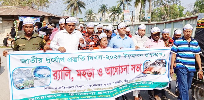 দুর্যোগের পূর্বাভাস প্রস্তুতি বাঁচায় প্রাণ ও ক্ষয়ক্ষতি” এই প্রতিপাদ্য নিয়ে তালায় জাতীয় দুর্যোগ প্রস্তুতি দিবস-২০২৫ উপলক্ষে র‍্যালী, অগ্নিকাগু, ভূমিকম্প বিষয়ক মহড়া ও আলোচনা সভা অনুষ্ঠিত হয়েছে।   সোমবার (১০ মার্চ)