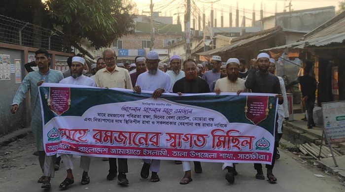 সাতক্ষীরার তালায় বাংলাদেশ জামায়াতে ইসলামি উদ্যোগে মাহে রমজানের পবিত্রতা রক্ষার দাবিতে স্বাগতম মিছিল ও পথসভা অনুষ্ঠিত হয়।   ১ মার্চ আসর নামাজ বাদ তালা বাজারের বিভিন্ন সড়ক প্রদক্ষিণশেষে পথসভা অনুষ্ঠিত