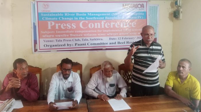 সাতক্ষীরার তালা উপজেলার কপোতাক্ষ নদ অববাহিকার পাখিমারা বিলে সরকার কর্তৃক বাস্তবায়িত জোয়ারাধার (টিআরএম) কার্যক্রমের বকেয়া ক্ষতিপূরণের দাবীতে সাংবাদিক সম্মেলন অনুষ্ঠিত হয়।   বৃহস্পতিবার (১৩ ফেব্রুয়ারি) সকালে তালা প্রেসক্লাব মিলনায়তনে উক্ত