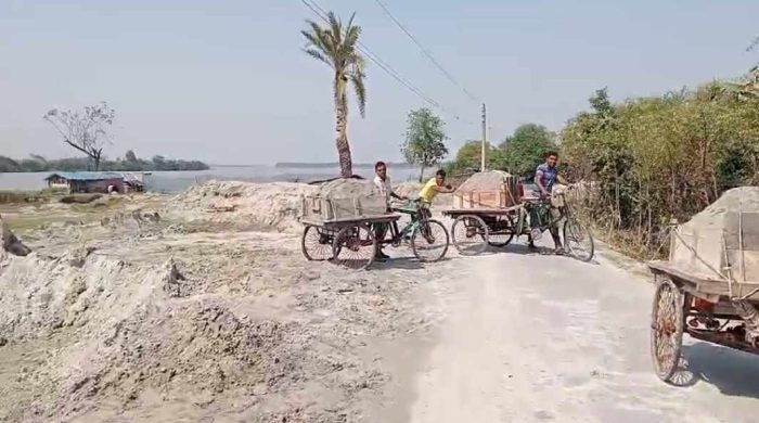 দেবহাটায় সরকারী নিষেধাজ্ঞা অমান্য করে অবৈধভাবে বালু উত্তোলন, হুমকির মুখে রুপসী ম্যানগ্রোভসহ সীমান্ত বেড়িবাঁধ। নদীর বালু কাটার ফলে প্রতিবছরই আমরা আমাদের ভূখন্ড হারাচ্ছি, নদীগর্ভে বিলীন হচ্ছে বিঘা বিঘা জমি। এছাড়া