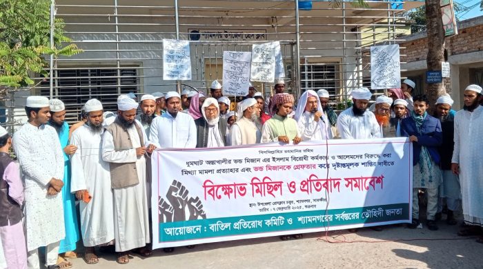 সাতক্ষীরার শ্যামনগরে নিজেকে পীর দাবি করা মিজানুর রহমানকে গ্রেপ্তারসহ তার ইসলাম বিরোধী কর্মকান্ড বন্ধের দাবিতে বিক্ষোভ মিছিল হয়েছে। শুক্রবার জুমার নামাজের পর থানা মসজিদ থেকে শুরু হয়ে বিভিন্ন সড়ক প্রদক্ষিণ