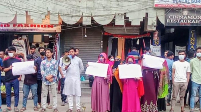 নানা অনিয়ম ও নির্যাতন বন্ধে শহরে মানববন্ধন কর্মসূচী পালন করেছে ফতুল্লার কুতুবপুরস্থ নয়ামাটির ইউরোটেক্স লিমিটেডের শ্রমিকরা। শনিবার (১৫ ফেব্রুয়ারি) বিকাল ৪টায় নারায়ণগঞ্জ প্রেস ক্লাবের সামনে জাতীয়তাবাদী গার্মেন্টস শ্রমিক দলের